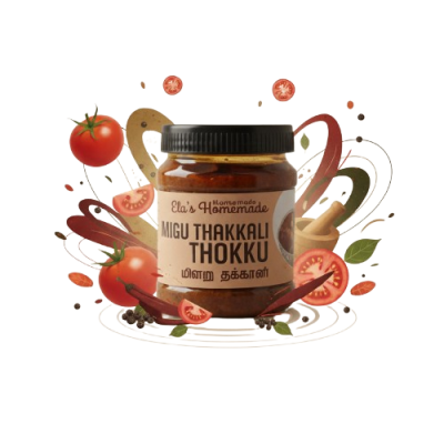 “Ela’s Homemade Thokku brings you the authentic taste of South India, crafted with traditional recipes, fresh ingredients, and utmost care for hygiene. Every jar delivers rich, tangy flavors made with love.”